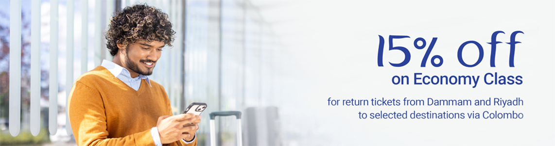 Dammam/Riyadh to Bangkok, Bangalore, Cochin, Dhaka, Hyderabad, Madurai, Jakarta, Kuala Lumpur, Chennai, Malé, Trivandrum, Tiruchirappalli via Colombo, and Dammam/Riyadh to Colombo |